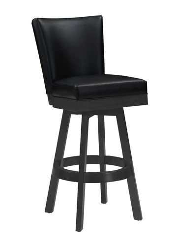 Classic Flex Back Barstool complements and blends with all traditional furniture. The simple strong lines with upholstered black faux leather, seat swivel are what makes this a great addition to any room in your home. Pair it with a bar, pub table or right up to your kitchen counter.